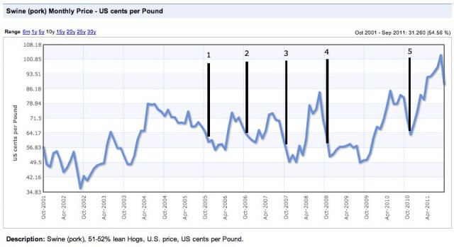 Interesting coincidence between pork prices and McRib….their business planners at work.